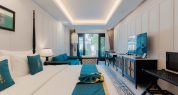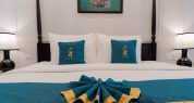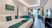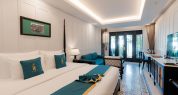 Grand Deluxe Garden View is designed around the concept of a traditional Lanna Colonial home, and is one of the hotel's most requested accommodations. The Suite is elegantly decorated in Lanna Cotton, elegant marble floors and white ceilings with warm natural light.The Siri Village Grand Suite king-size bed features a unique traditional carving. To top it all, the garden view and city views from the balcony suite can be appreciated fully.